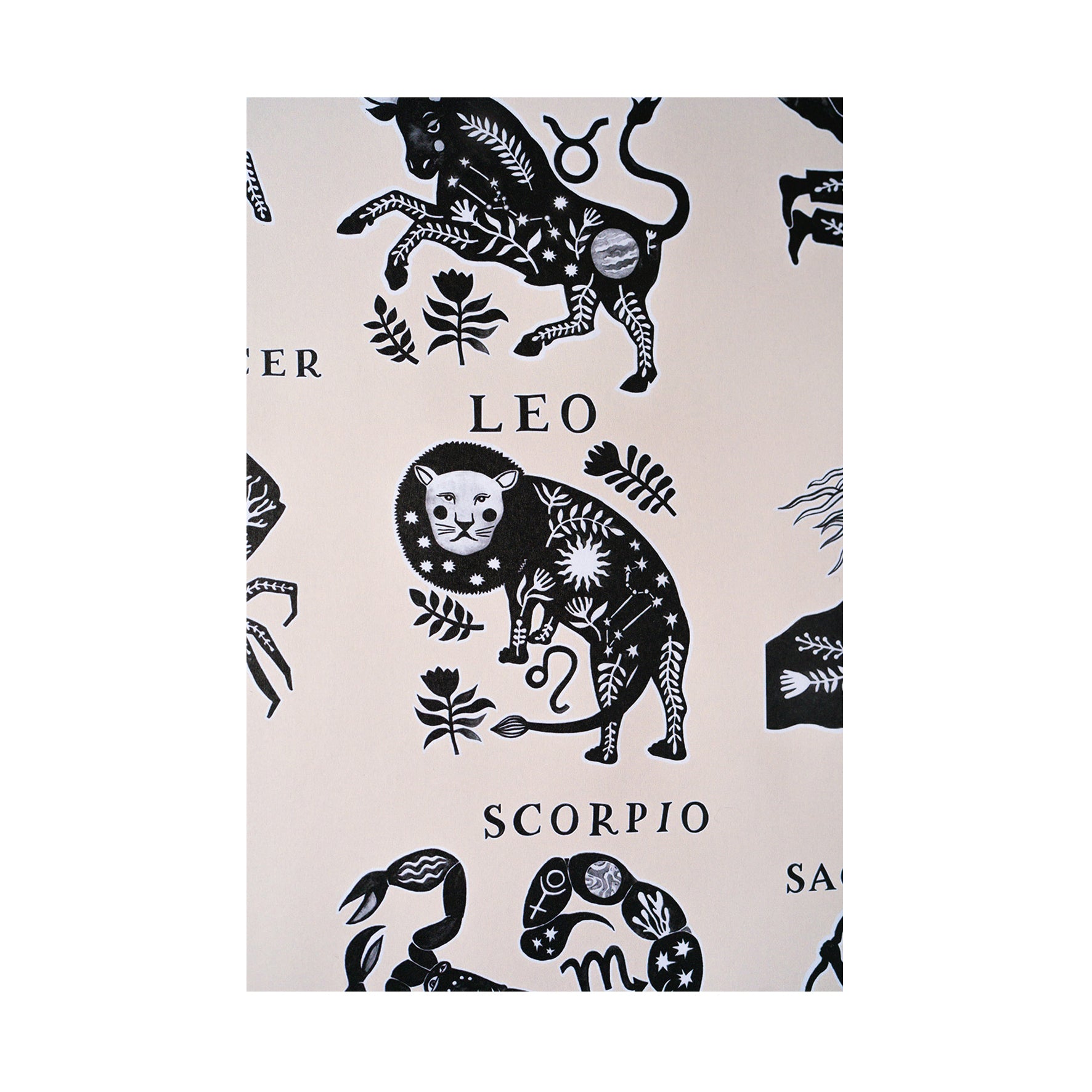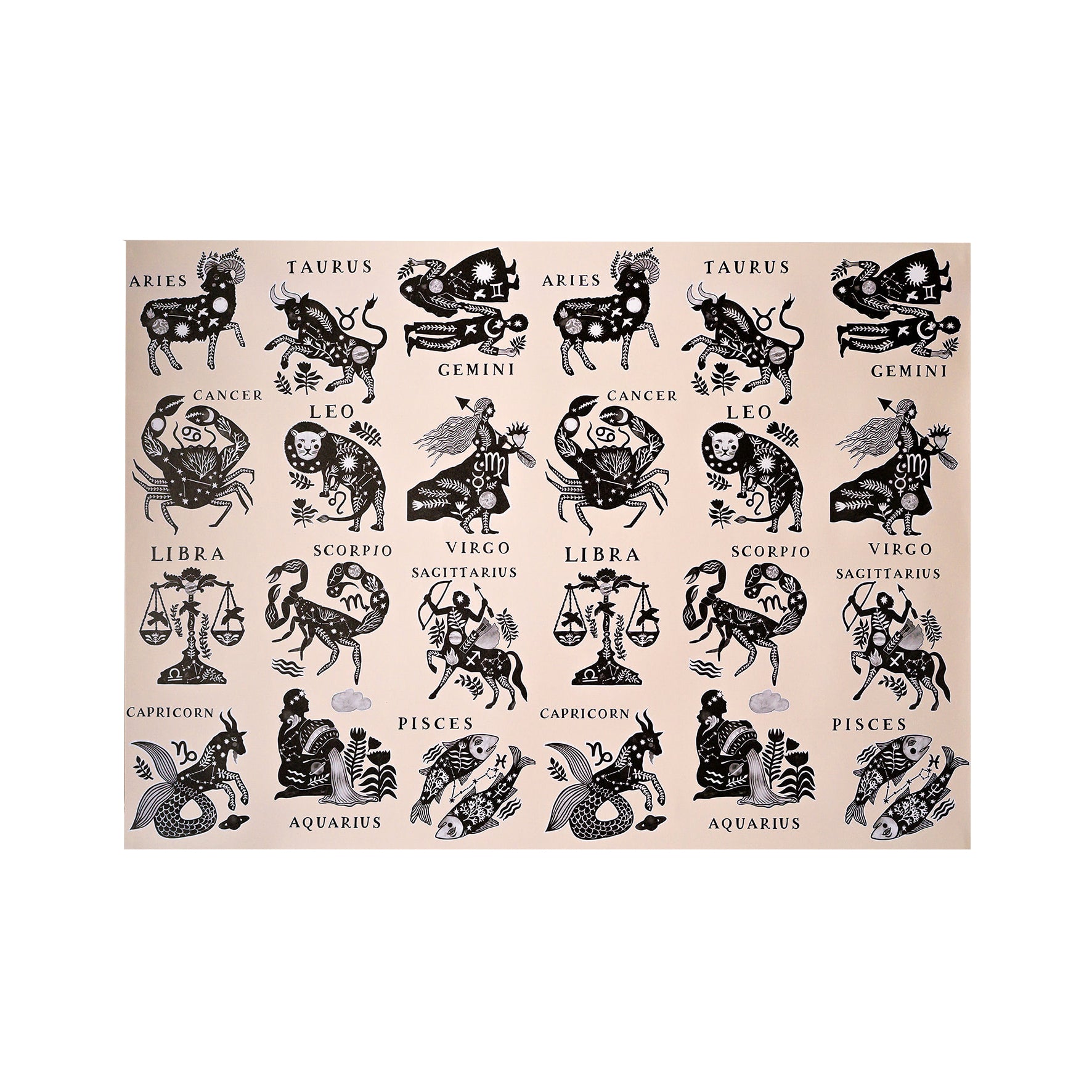Matte paper gift wrap 50 x 70 cm with a Cosmic Zodiac design which has been hand-painted at my studio in Wales, UK.